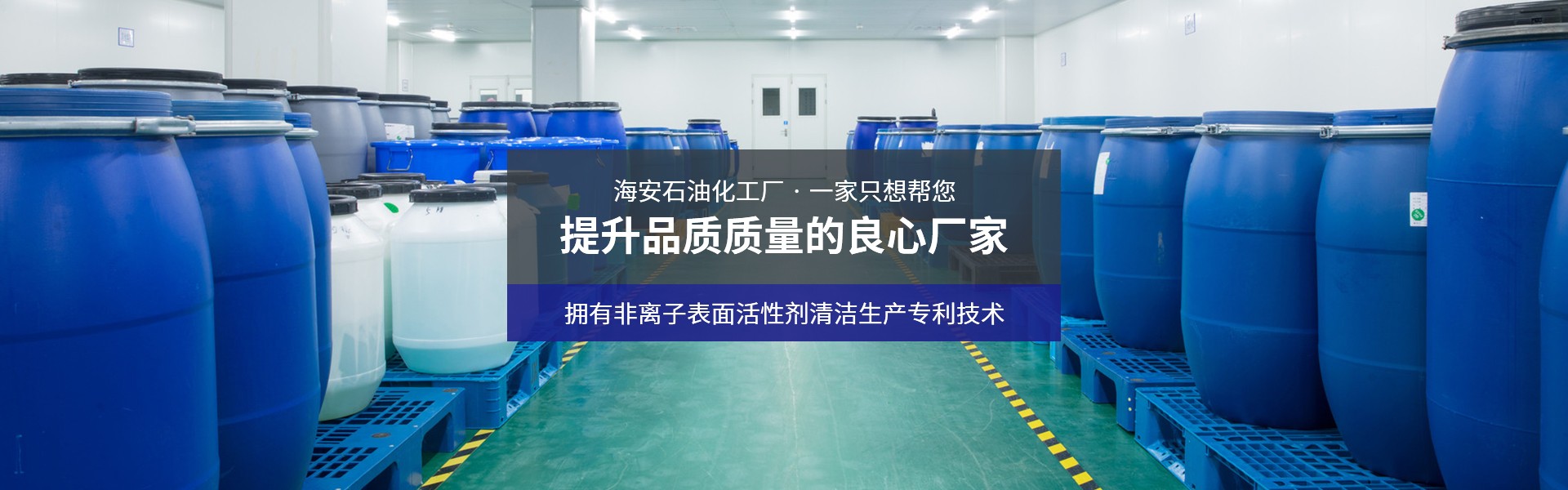 位于海安工业园区内,始建于1972年, 1997年改为股份制企业,经过30多年的发展,企业自主创新世界先进的生产工艺,拥有非离子表面活性剂清洁生产专利技术,具有8万吨工业助剂的年生产能力,企业通过了ISO9001:2000国际质量管理体系认证,拥有自营进出口权,工厂已成为江苏南通知名的绿色企业。 工厂主要生产各种表面活性剂,工业助剂。产品有匀染剂、乳化剂、分散剂、渗透剂、净洗剂、柔软剂、添加剂、抗静电剂、精练剂、增稠剂、消泡剂、珠光剂、脱模剂、固色剂、农药乳化剂、化纤油剂、聚醚、聚乙二醇、聚丙二醇、聚乙二醇单(双)酯、司盘、吐温、醇醚磷酸酯、多元醇酯等20多个系列、300多个品种......